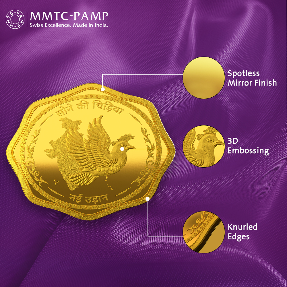 24K (999.9+) Purest 10 gm Sone Ki Chidiya Gold Coin – MMTC-PAMP