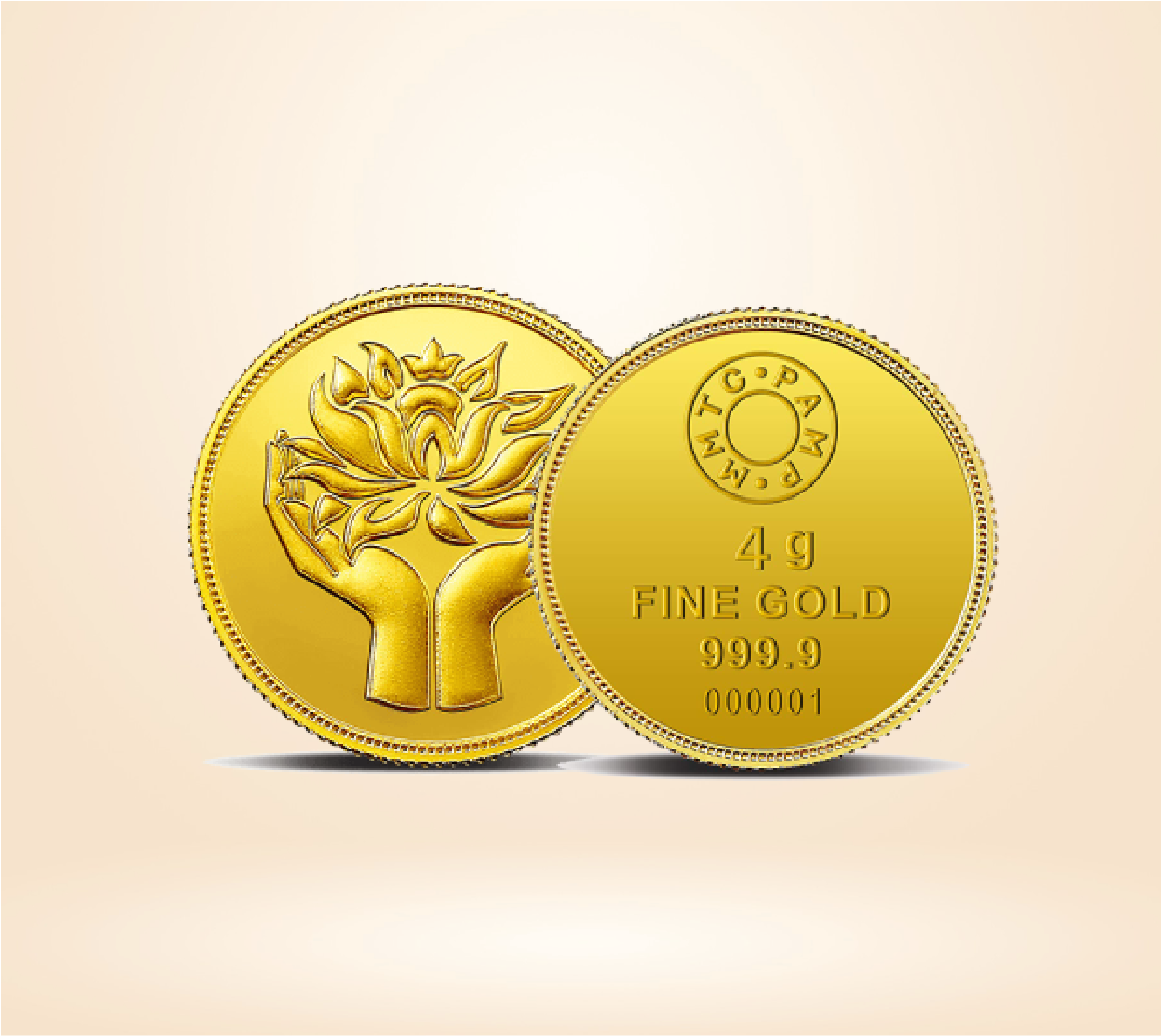 24K (999.9+) Purest 4 gm Lotus Gold Coin – MMTC-PAMP (Legacy)