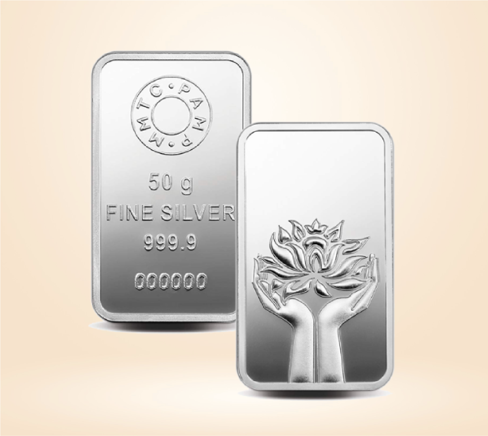 999.9+ Purest 50 gm Lotus Silver Bar – MMTC-PAMP