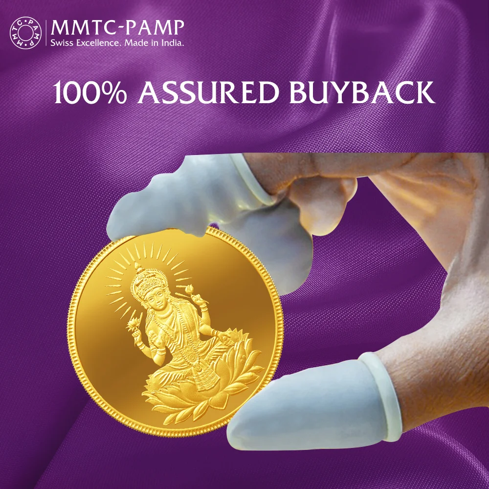 MMTC-PAMP Goddess Laxmi 24K Gold Coin – Available in 5gm & 8gm. Symbol of prosperity & well-being. 999.9 purest gold.