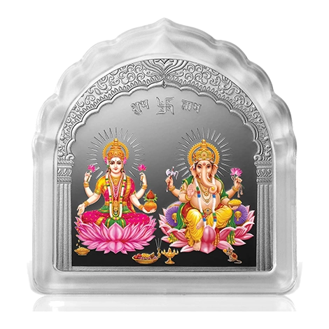 999.9+ Purest 100 gm Stylized Laxmi Ganesh Colored Silver Bar – MMTC-PAMP