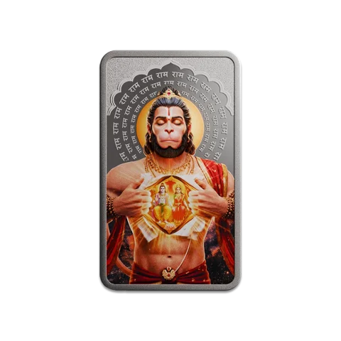 999.9+ Purest 50 gm Lord Hanuman Silver Bar – MMTC-PAMP